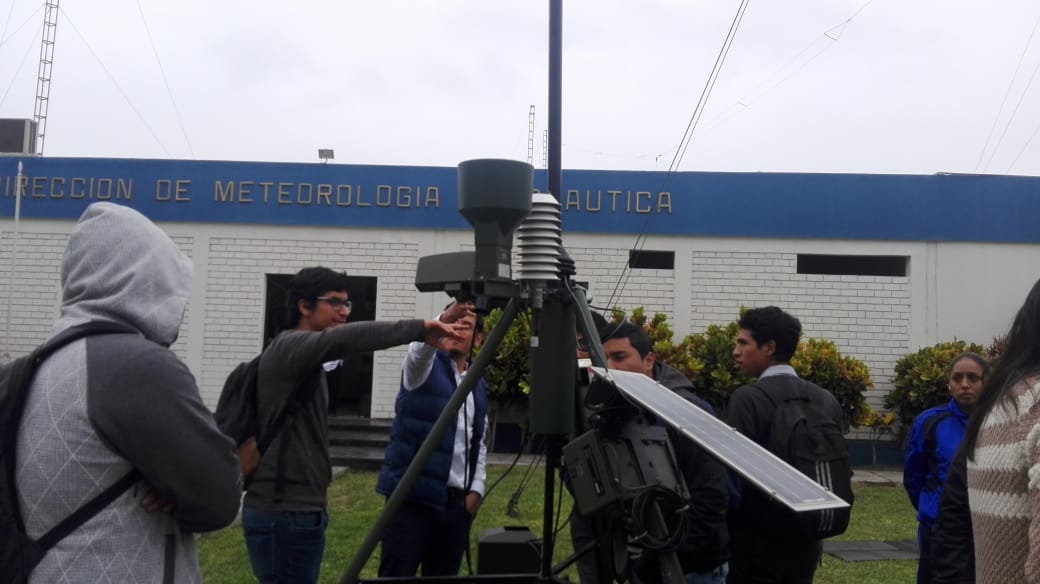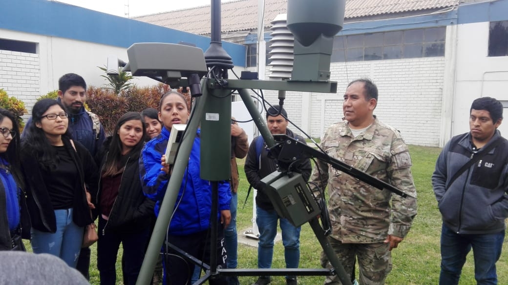 La charla fue dirigida por el comandante Ángel Tongo, Ingeniero Meteorólogo de la promoción 1987- UNALM. El comandante menciona que “Las Fuerzas Aéreas cuentan con un área de Meteorología, la DIRMA, que proporciona información las 24 horas del día mediante las 20 estaciones meteorológicas que tienen en dominio, también se tiene pequeños centro de pronóstico, así como en el VRAEM. Para el asesoramiento meteorológico se tiene como herramienta información del GEONETCAST, Radar Meteorológico, estaciones automáticas, modelos numéricos meteorológicos y un detector de tormentas (imágenes satelitales a tiempo real que detecta relámpagos).